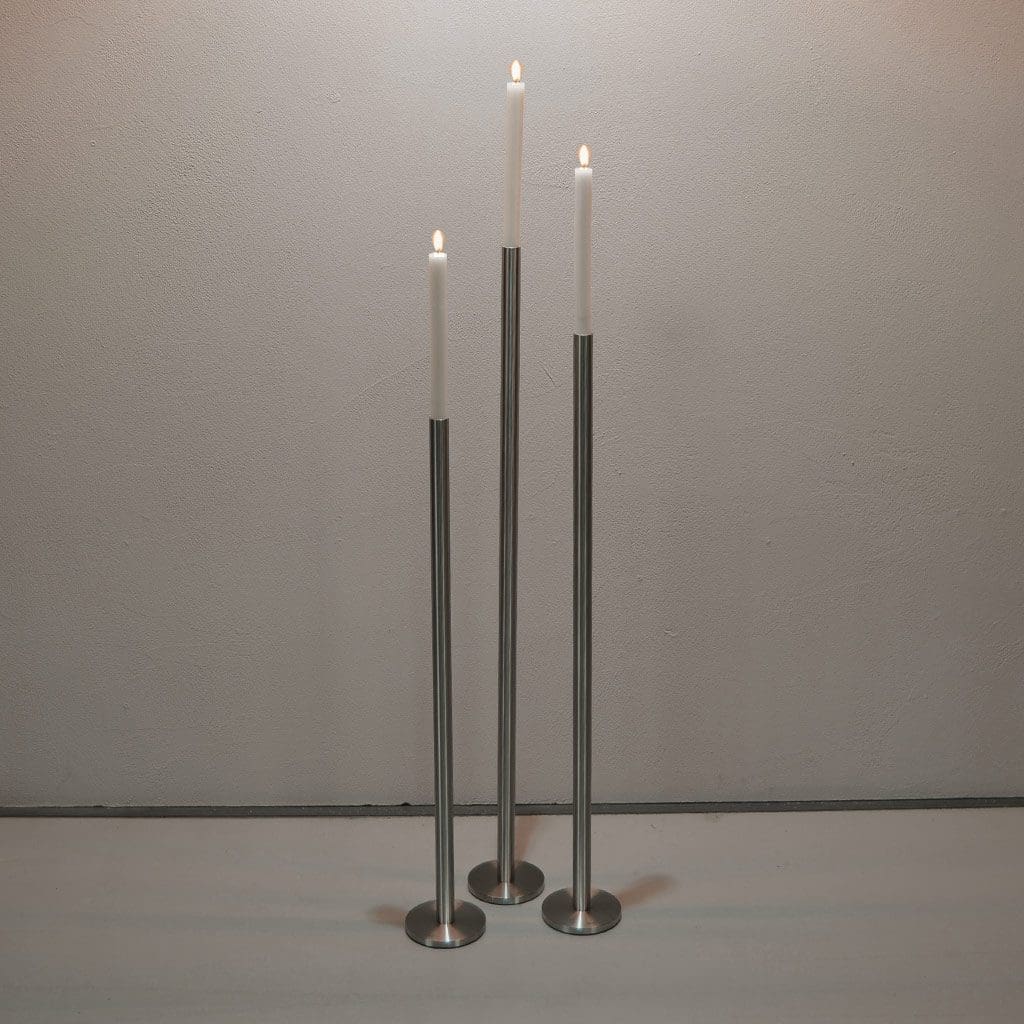 Als Kombination entsteht aus dem Kerzenständer SET PUR eine kleine Familie. Die Grössen 70cm, 80cm und 90cm ergänzen sich perfekt und lassen sich mit den Tropfschützen auch noch optimieren.