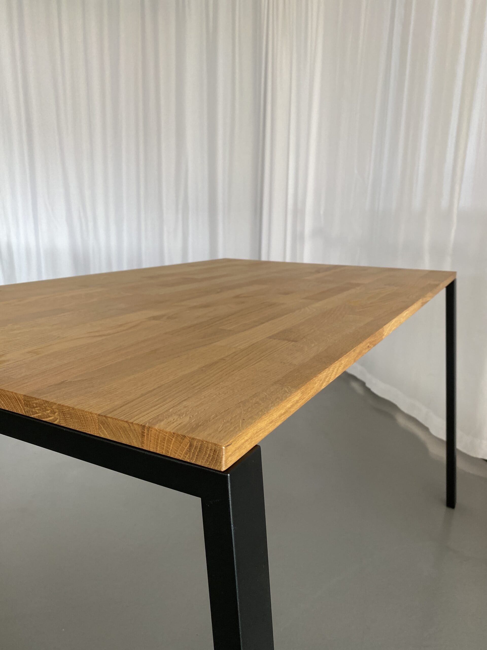 Der Tisch SARI mit einer Eichen Tischplatte – Nur ein Stück verfügbar!